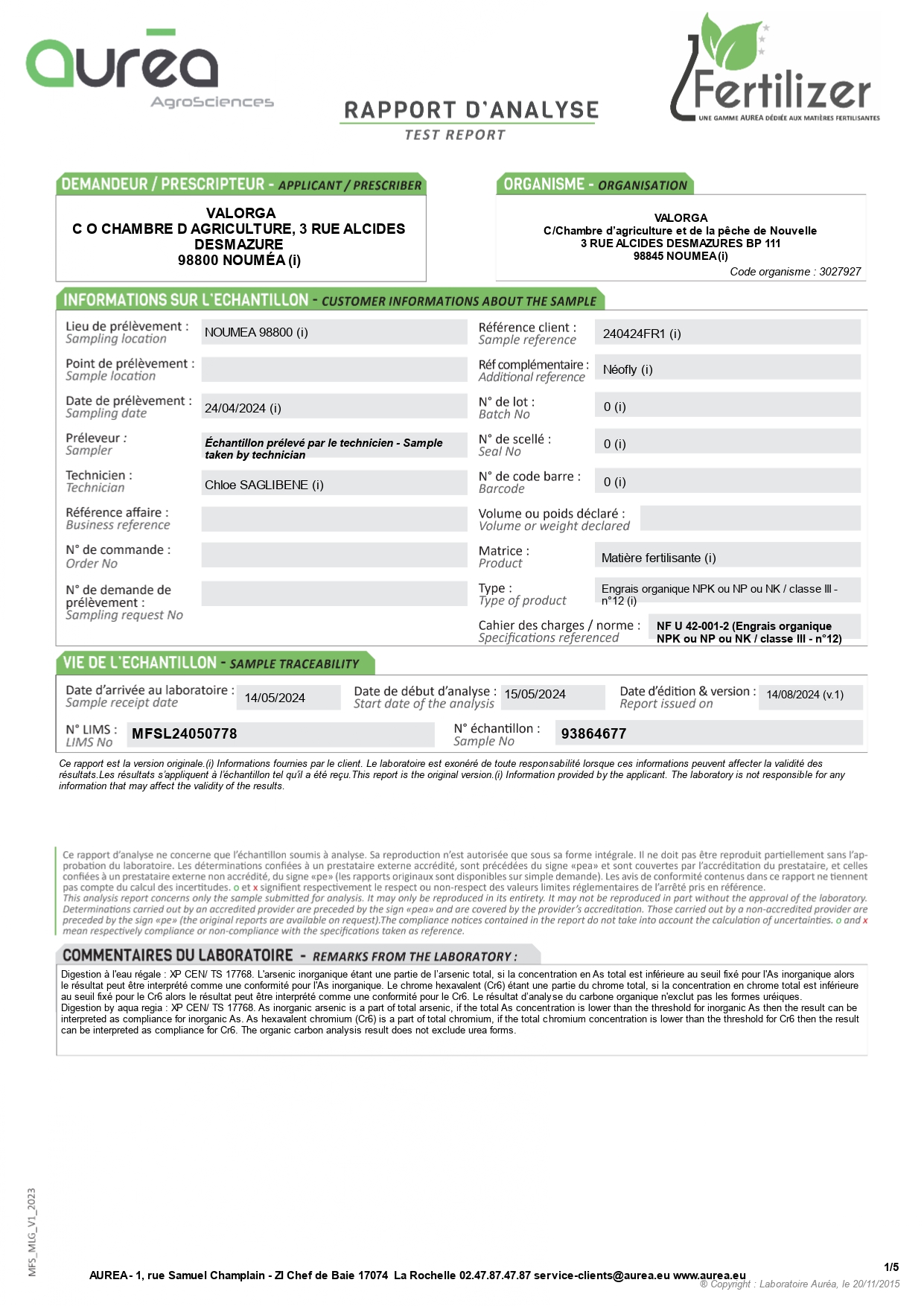La mission a porté sur la planification des analyses de frass sur la période 2024–2027, intégrant les paramètres analytiques, la nature des déchets organiques entrants et les conditions de stockage. OpaO a également mené une étude préparatoire à la réalisation d’essais agronomiques, comprenant la rédaction de protocoles, ainsi que l’identification des actions préalables à leur mise en œuvre.